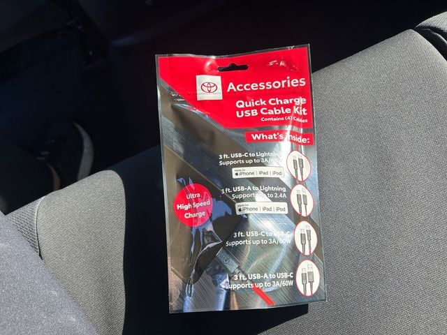 24. Requires compatible iPhone® with an active data plan tethered with an approved data cable. Operability depends on network availability, a cellular connection, and GPS signal. Services vary by vehicle and are subject to change at any time without notice. Data charges may apply. To learn more, go to https://www.toyota.com/audio-multimedia/. To learn more about Toyota’s Connected Services data collection, use, sharing, and retention practices, please visit https://www.toyota.com/support/privacy-notice/. Apple CarPlay® is a registered trademark of Apple Inc.